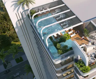 The project offers an exceptional collection of lifestyle amenities thoughtfully designed to inspire relaxation and well-being. Residents can enjoy a gym, clubhouse, outdoor cinema, BBQ and dining areas, adult and kids’ pools, and a dedicated kids’ zone that fosters family enjoyment. Every space is crafted to complement the building’s serene atmosphere, creating an environment where leisure, wellness, and modern sophistication come together seamlessly.